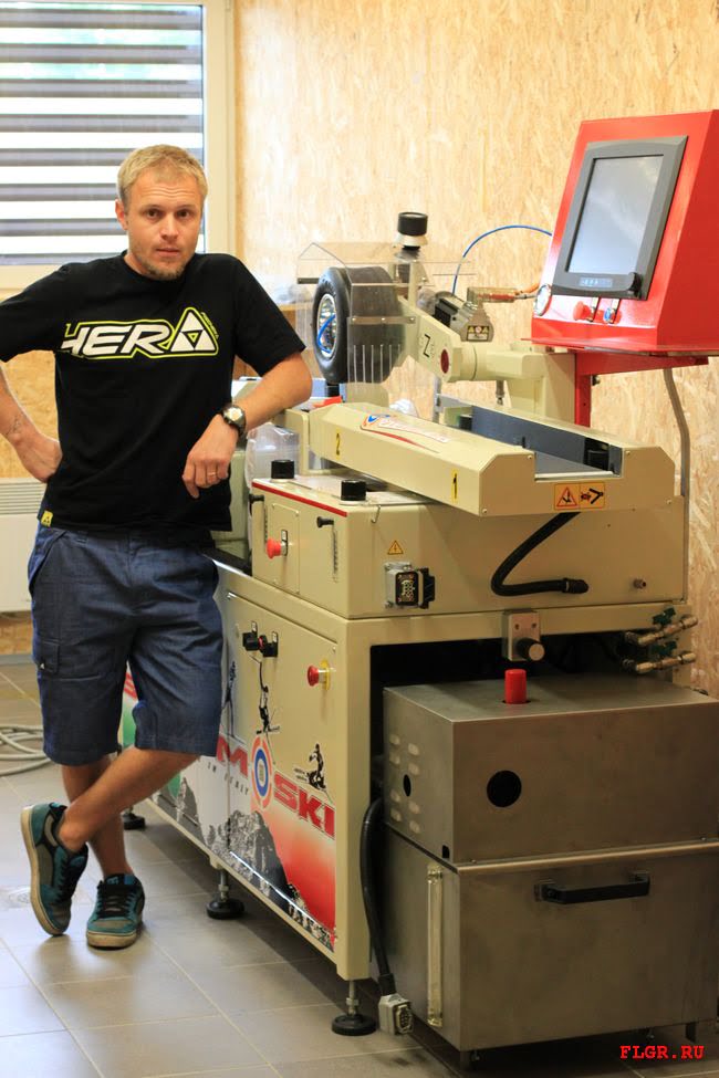 Сергей Лопухин (Эстония, тренер-инженер) ответственный за нанесение структур на лыжи всех спортсменов возле станка MANTEC