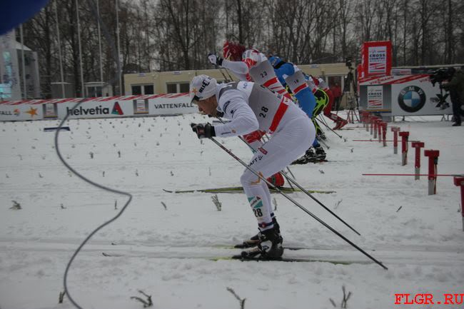 Эмиль Йонсон (Швеция) не обладает высоким ростом (170 см), но является одним из быстрейших спринтеров планеты. На фото он готов к старту и принял позицию удобную ему. Принцип постановки палок анологичен
