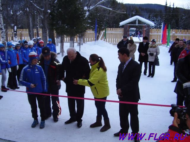 Почетную обязанность перерезания символической ленточки была доверена Виктору Зимину, Валерию Денщикову, а также победительнице второго дня соревнований Елене Соболевой, представляющей Новосибирскую область