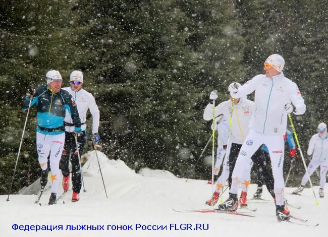 Помимо сборной команды России здесь проводят свои тренировки команды Швеции, Казахстана, С.Ш.А., Канады, Германии. На фотографии сборная Швеции. Сегодня у них была скоростно-силовая тренировка на отрезках по 100 метров. Слева один из сильнейших спринтеров в мире - Эмиль Йонссон.