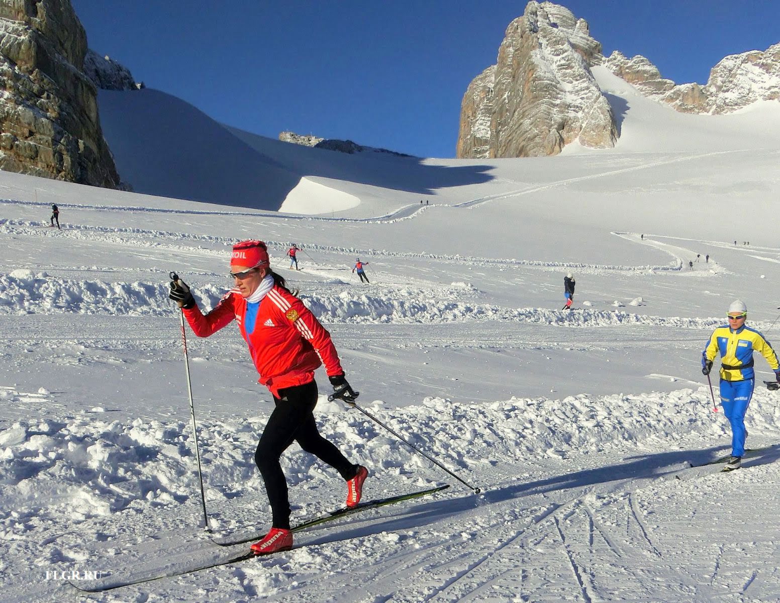 В настоящее время женский состав сборной команды России по лыжным гонкам находится в Австрии. Сюда команда приехала с моря (новость здесь) и первые дни проводила подготовку внизу, на высоте 900 метров, спустя один тренировочный цикл спортсменки стали подниматься на глетчер.