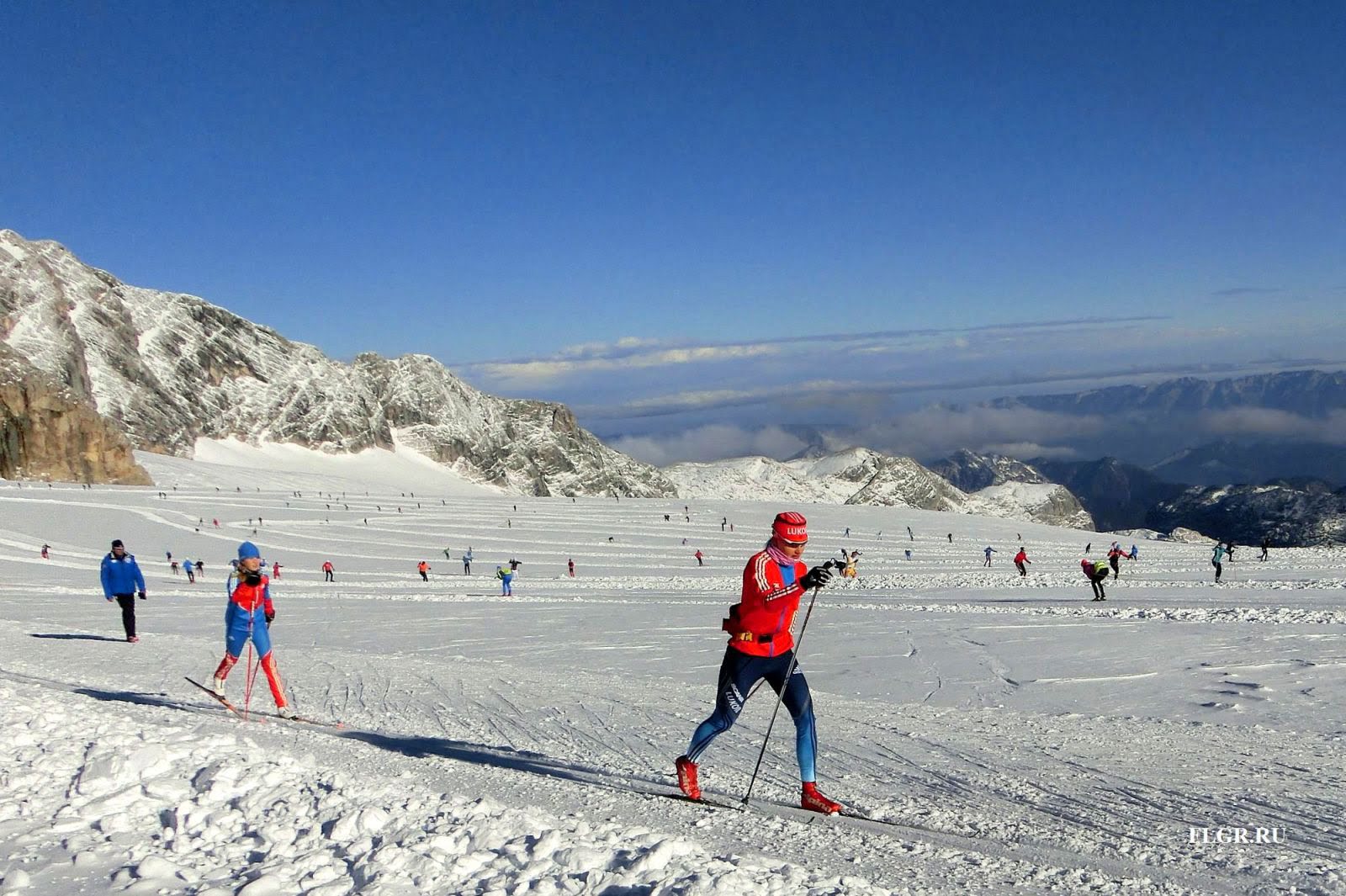 Подъем спортсменов в 6.30 утра, выезд в 7.00. Все для того, чтобы успеть на первый подъемник, доставляющий спортсменов на глетчер.