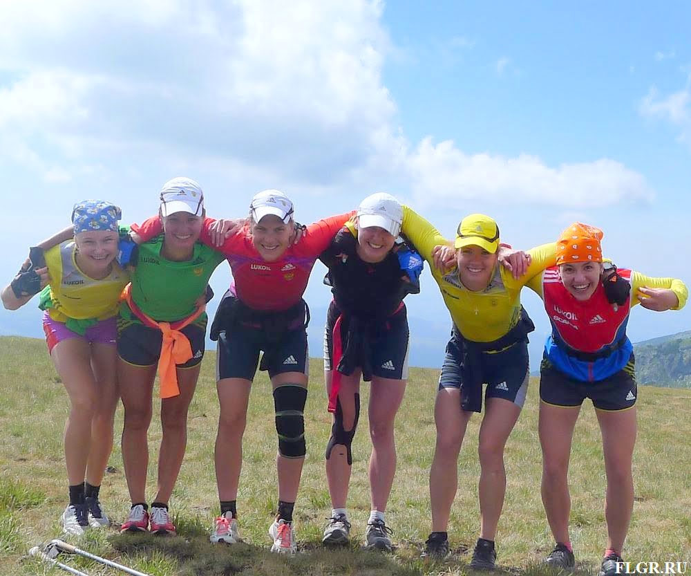 Слева-направо (верхний ряд): Елена Соболева (Новосибирская область/ХМАО), Алия Иксанова (Республика Татарстан), Анастасия Доценко (Республика Татарстан), Екатерина Храмцова (Московская область/Тамбовская область), Дмитрий Бугаев (тренер, ХМАО), Мария Гущина (ХМАО), Ольга Кузюкова (Московская область/Алтайский край).