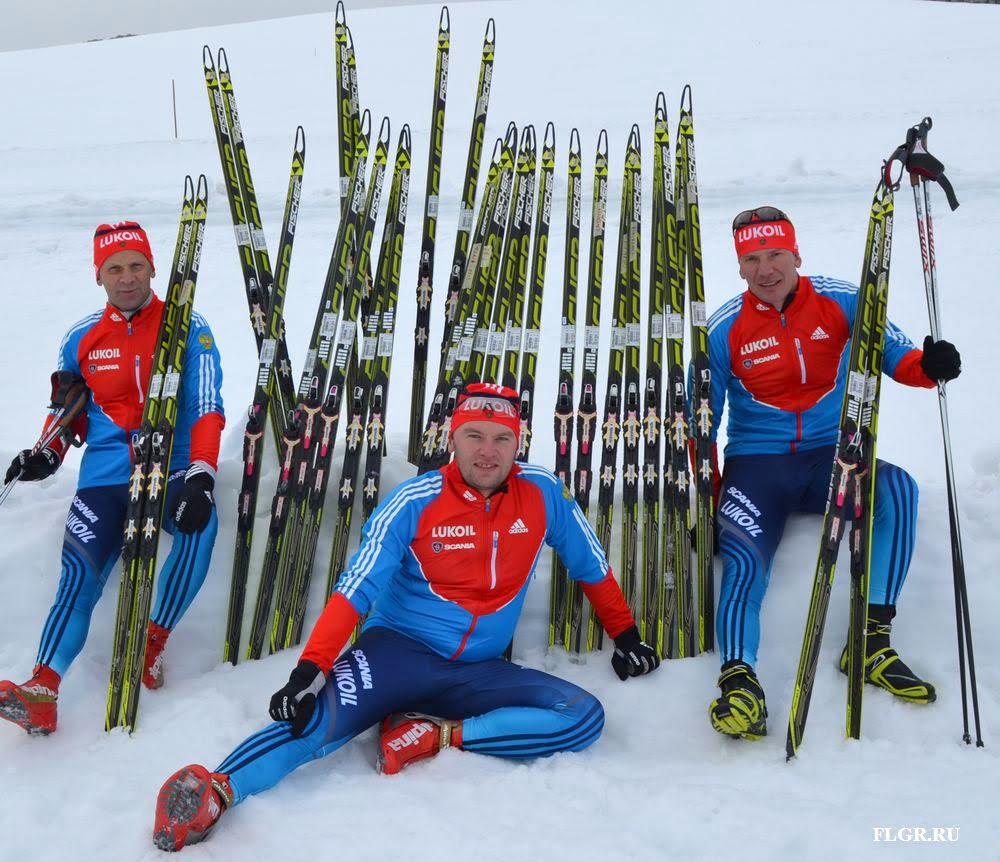 Тем временем сервисмены сборной команды на леднике в Австрии уже тестировали лыжи для спортсменок. Виктор Смирнов, Павел Трошкин и Дмитрий Биченев.
