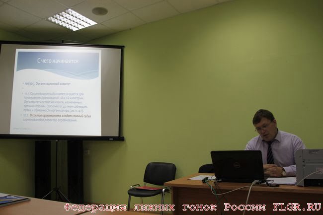 После перерыва Игорь Беломестнов рассказал присутствующим об изменениях в правилах соревнований по лыжным гонкам, а также о квалификационных требованиях и едином всероссийском спортивном классификаторе (ЕВСК), согласно которому присваиваются все судейские категории.