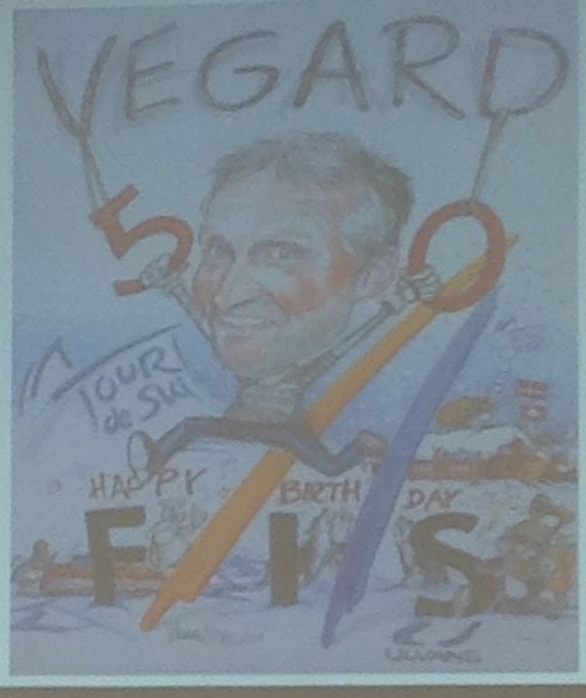 Вот таким дружеским шаржем коллеги по ФИС поздравили Вегарда Ульванга с юбилеем.