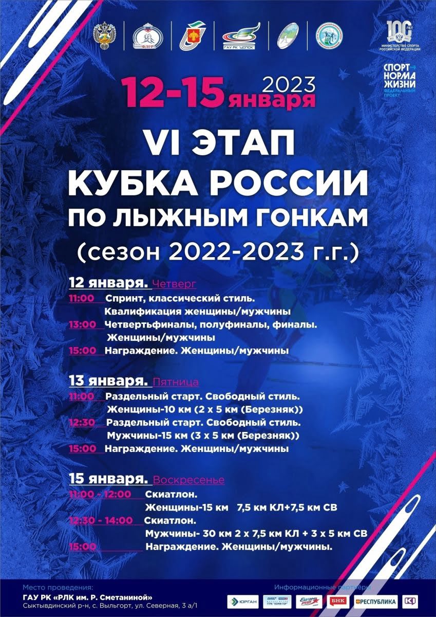 С 12 по 15 января состоится VI этап Кубка России по лыжным гонкам сезона 2022/2023.