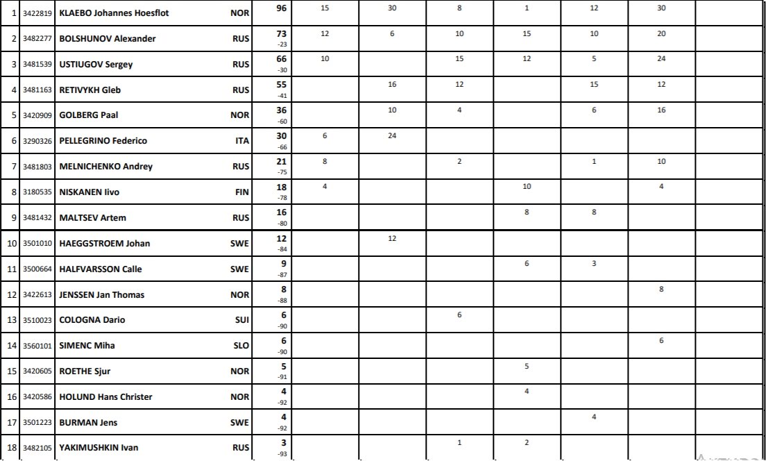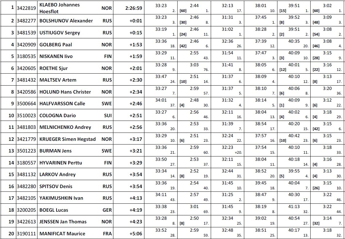 Итоговый зачет перед заключительной горой в Валь ди Фиемме. Для победы в ТДС 2020 Большунову нужно выиграть больше 2 секунд у Клебо, а Устюгову больше 16 секунд на финише.