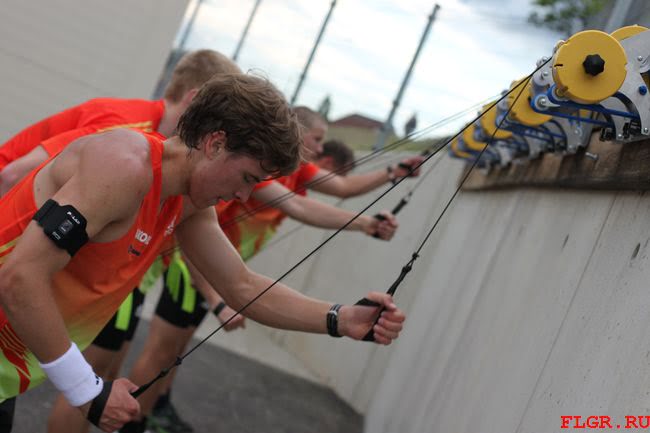 После любой тренировки обязательная силовая поддержка. Устройство называемое среди лыжников "станок" или "тренажер" используется круглогодично для развития силы верхнего плечевого пояса.