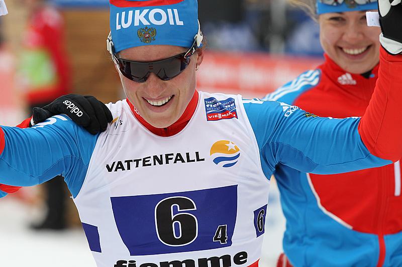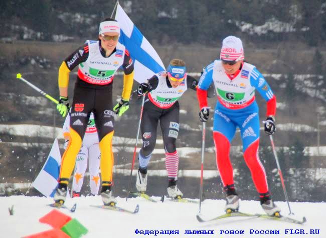 На четвертом этапе за Россию выступала Юлия Чекалева. Уже на первом кругу Юлия догоняет и уходит от американской лыжницы Джессики Диггинс (чемпионки мира в командном спринте). А на втором кругу метр за метром она сокращает разрыв и с финской лыжницей, а за 1.5 км до финиша обходит ее!