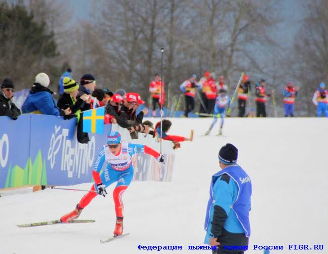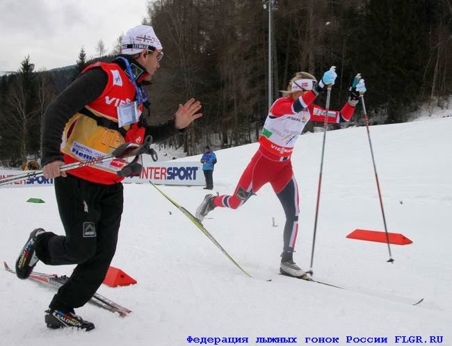 На первом этапе за Россию бежала Юлия Иванова. Через 1 км после старта на спуске ей ломают палку, и она целый подъем идет с одной. Организаторы не предусмотрели в том месте тренерскую биржу, запрещая там находиться.