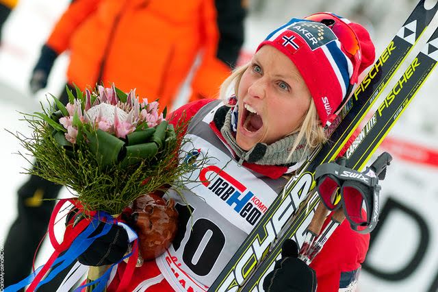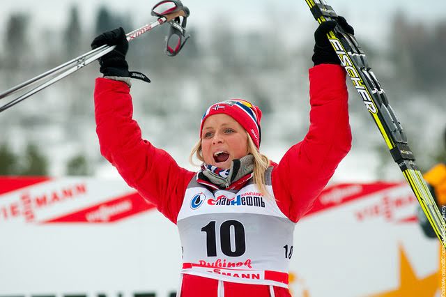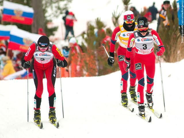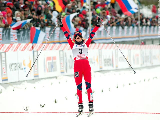 Тереза Йохауг из Норвегии выигрывает женский скиатлон 7.5+7.5 км! Юстина Ковальчик (Польша) на втором месте, Марит Бъерген (Норвегия) на третьем.