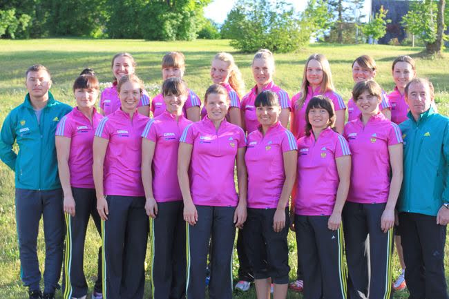 Нижний ряд (слева-направо): Бугаев Дмитрий (тренер, ХМАО-Югра), Шаповалова Евгения (ХМАО-Югра/Свердловская область), Годованиченко Дарья (Тюменская область), Соболева Елена (Новосибирская область/ЯНАО), Чекалева Юлия (Вологодская область), Иксанова Алия (Республика Татарстан), Иванова Юлия (Республика Коми), Храмцова Екатерина (Московская область/Тамбовская область), Меньшенин Григорий (старший тренер, Пермский край).