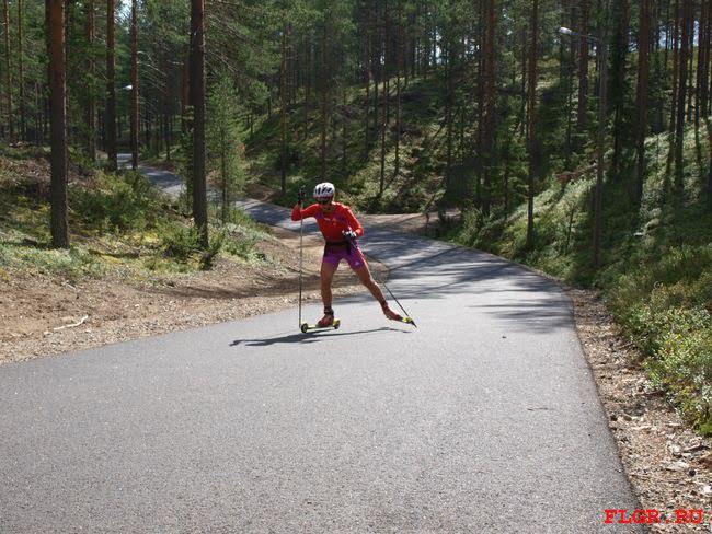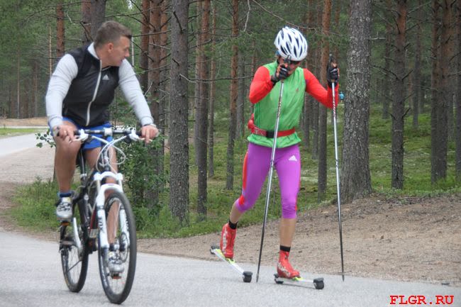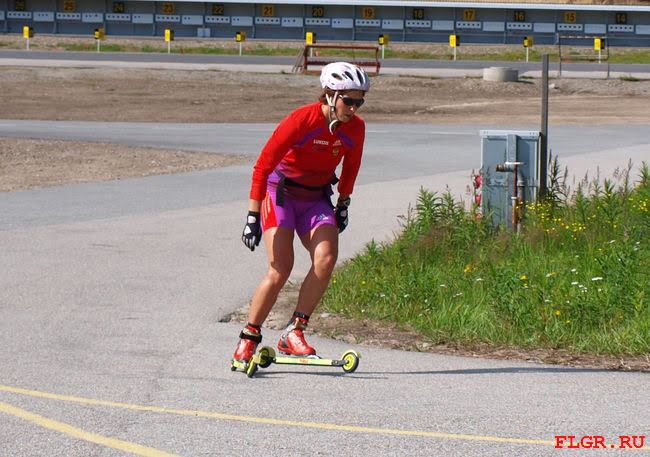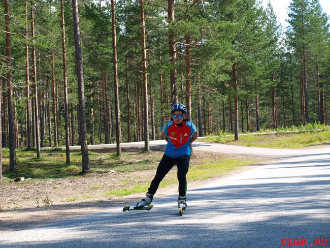 Юлия Иванова (Республика Коми). В подготовке используются различные лыжероллеры - start, marwe и proski. На фотографии Юлия проводит тренировку на лыжероллерах marwe без палок, тем самым увеличивая нагрузку на ноги.